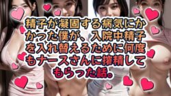 同人 精子が凝固する病気にかかった僕が、入院中精子を入れ替えるために何度もナースさんに搾精してもらった話。 精子が凝固する病気にかかった僕が、入院中精子を入れ替えるために何度もナースさんに搾精してもらった話。価格880円配信開始日2025-07-25ジャンル辱め/制服/看護婦・ナース/痴女/人妻・主婦/巨乳/パイパン/野外・露出/シミュレーション... 2025.07.25 同人